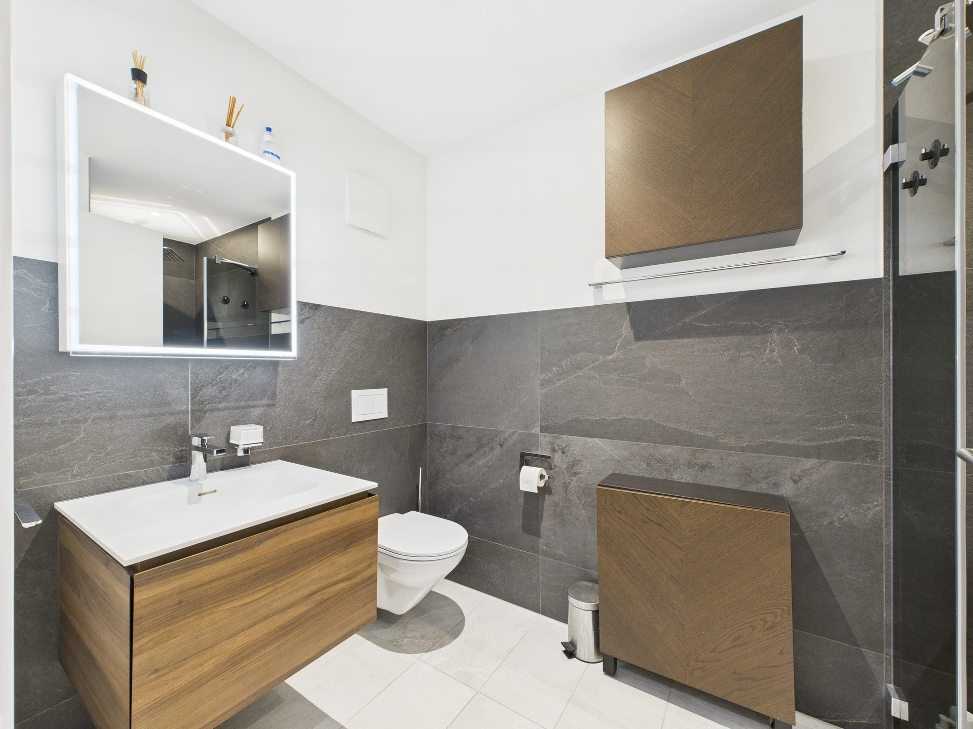 Zwei Tiefgaragenplätze mit moderner E-Ladestation, ein V-Zug Wäscheturm, ein grosszügiges Kellerabteil sowie der komfortable Liftzugang direkt auf das Wohnstockwerk sorgen für höchsten Komfort. Die ruhige Lage in Kombination mit Dorfladen und Bushaltestelle in Gehdistanz rundet dieses exklusive Angebot ab.